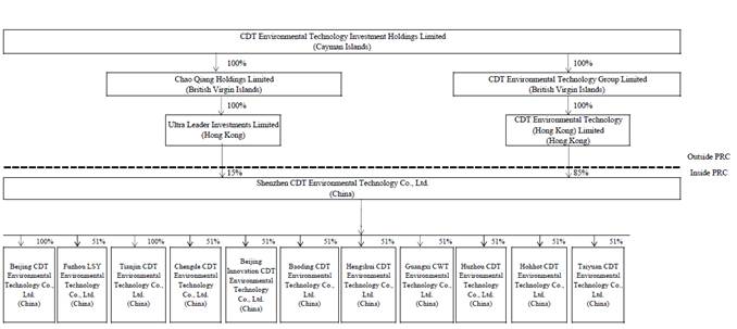 CDT BVI is a holding company holding all of the outstanding equity of CDT Environmental Technology (Hong Kong) Limited, or CDT HK, which was established in Hong Kong on July 30, 2015. CDT HK is also a holding company holding 85% of the outstanding equity of Shenzhen CDT. We, through Ultra HK and CDT HK, hold 100% of the outstanding equity of Shenzhen CDT. Shenzhen CDT holds equity interests in the PRC subsidiaries noted in the charts in “Corporate History and Structure”.